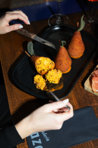 | Croquette de pomme de terre fourré à la mozzarella et charcuterie |